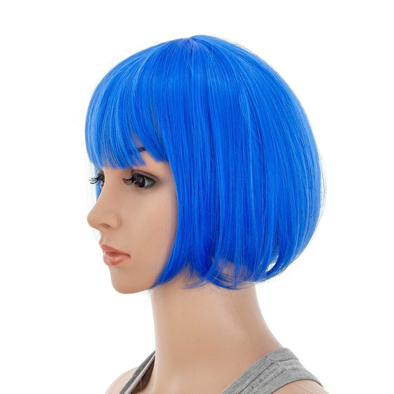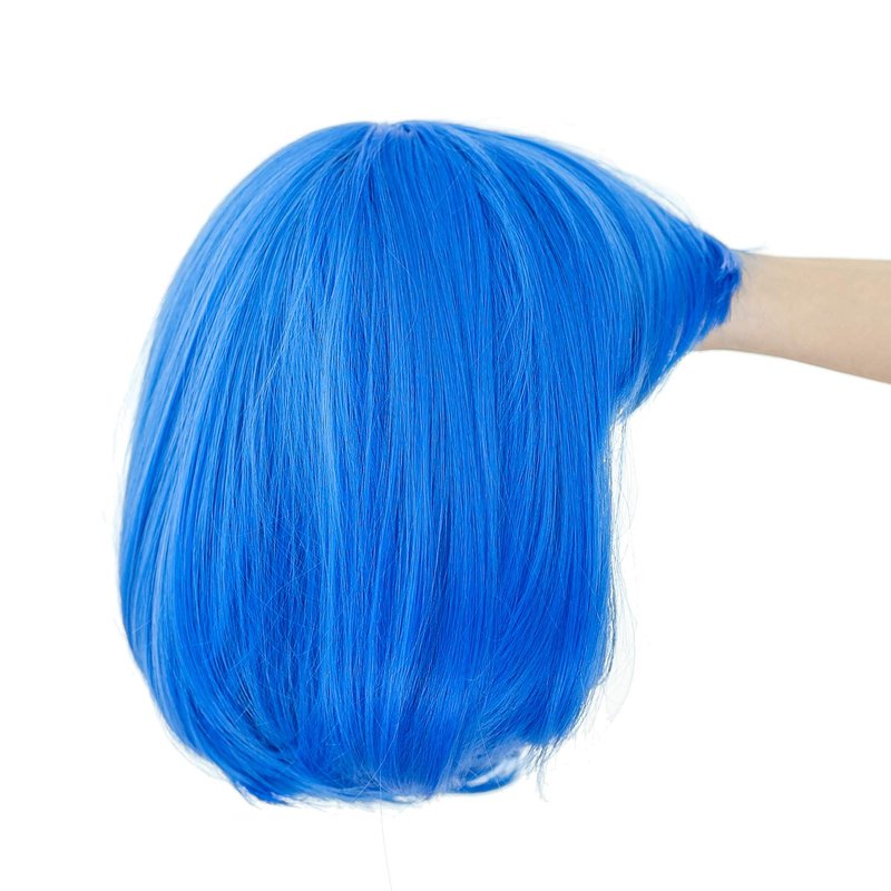 SWACC 10 Inch Short Straight Bob Wig with Bangs Synthetic Colorful Cosplay Daily Party Flapper Wig for Women and Kids with Wig Cap (Blue)