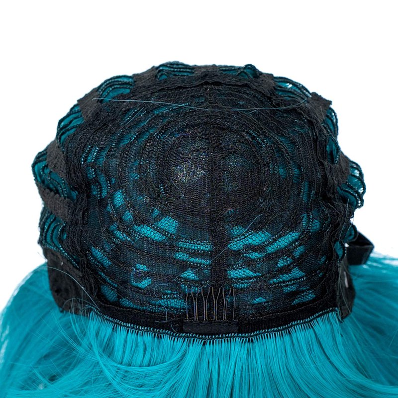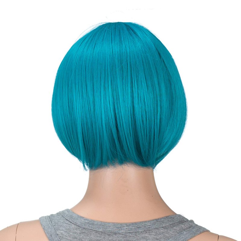 SWACC 10 Inch Short Straight Bob Wig with Bangs Synthetic Colorful Cosplay Daily Party Flapper Wig for Women and Kids with Wig Cap (Teal Blue)