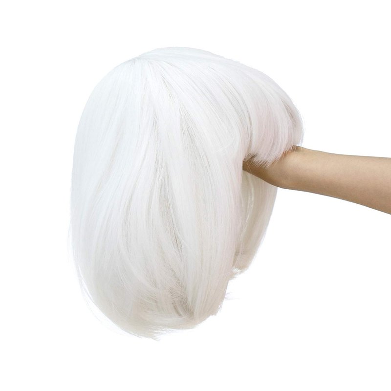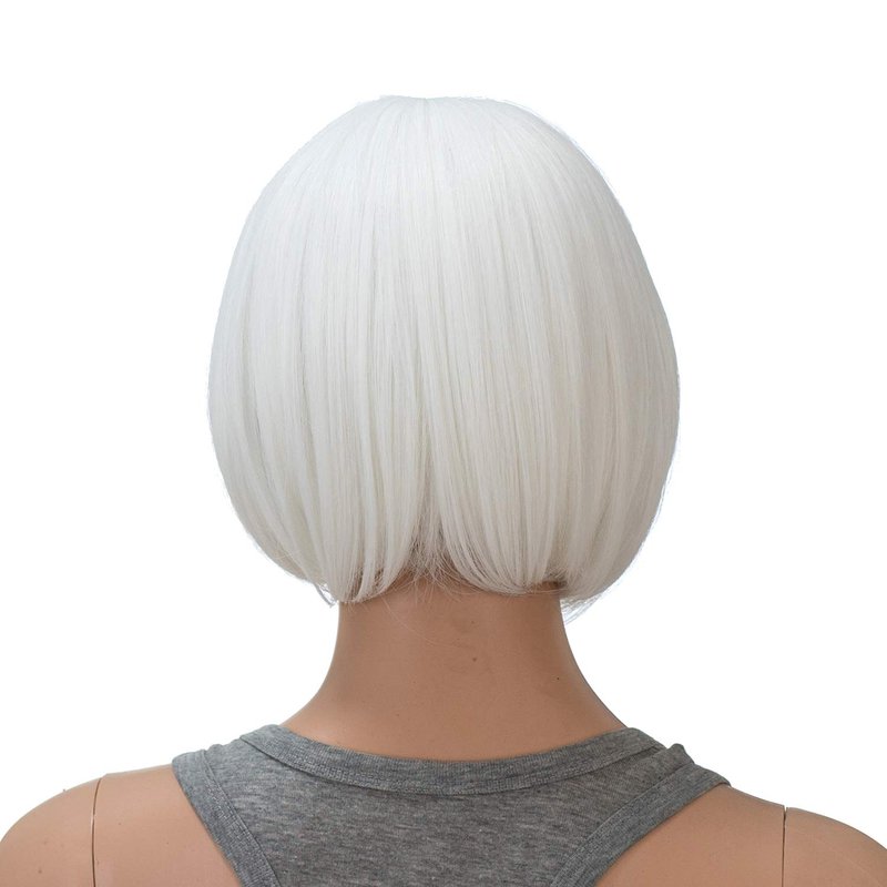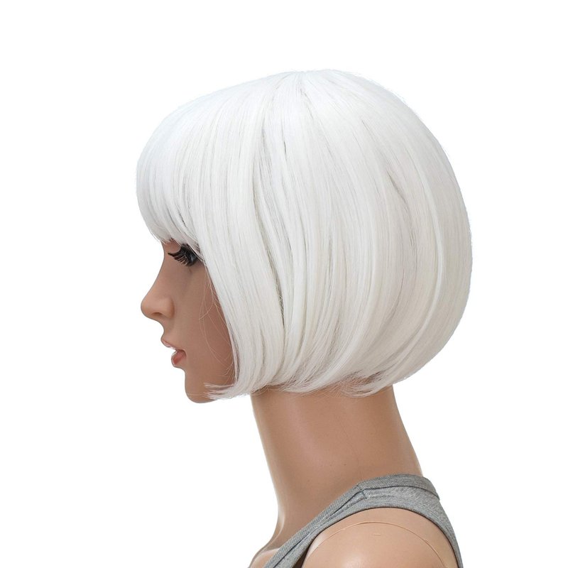SWACC 10 Inch Short Straight Bob Wig with Bangs Synthetic Colorful Cosplay Daily Party Flapper Wig for Women and Kids with Wig Cap (White)