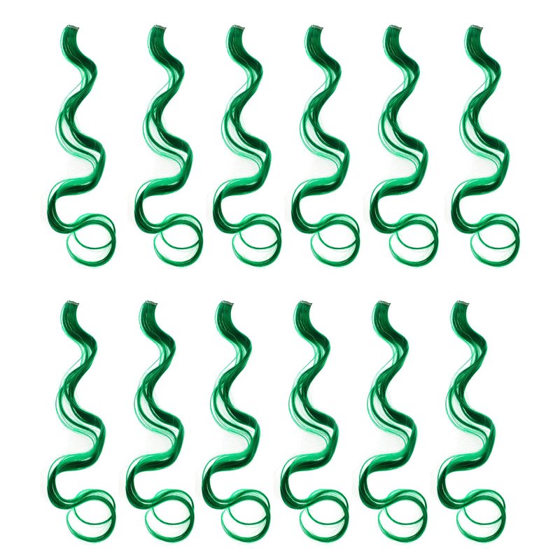 SWACC 12 Pcs Curly Wavy One Color Party Highlights Clip on in Hair Extensions Colored Hair Streak Synthetic Hairpieces (Green)