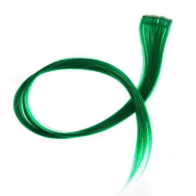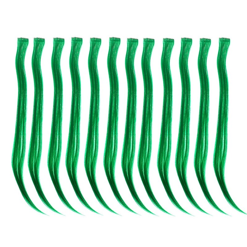 SWACC 12 Pcs Straight One Color Party Highlights Clip on in Hair Extensions Colored Hair Streak Synthetic Hairpieces (Green)