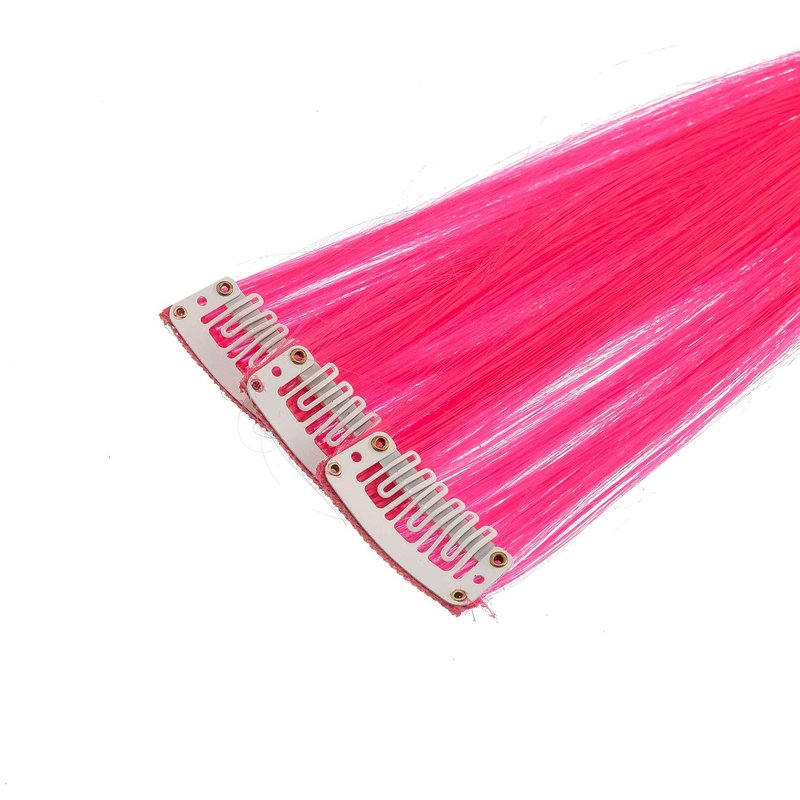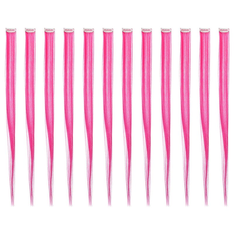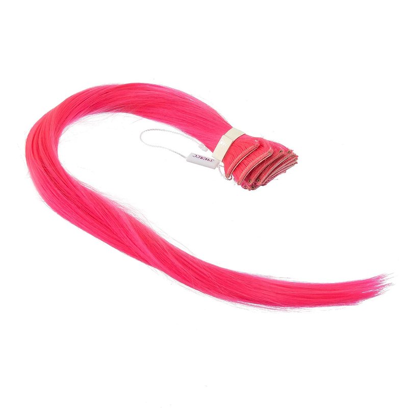 SWACC 12 Pcs Straight One Color Party Highlights Clip on in Hair Extensions Colored Hair Streak Synthetic Hairpieces (Neon Pink)