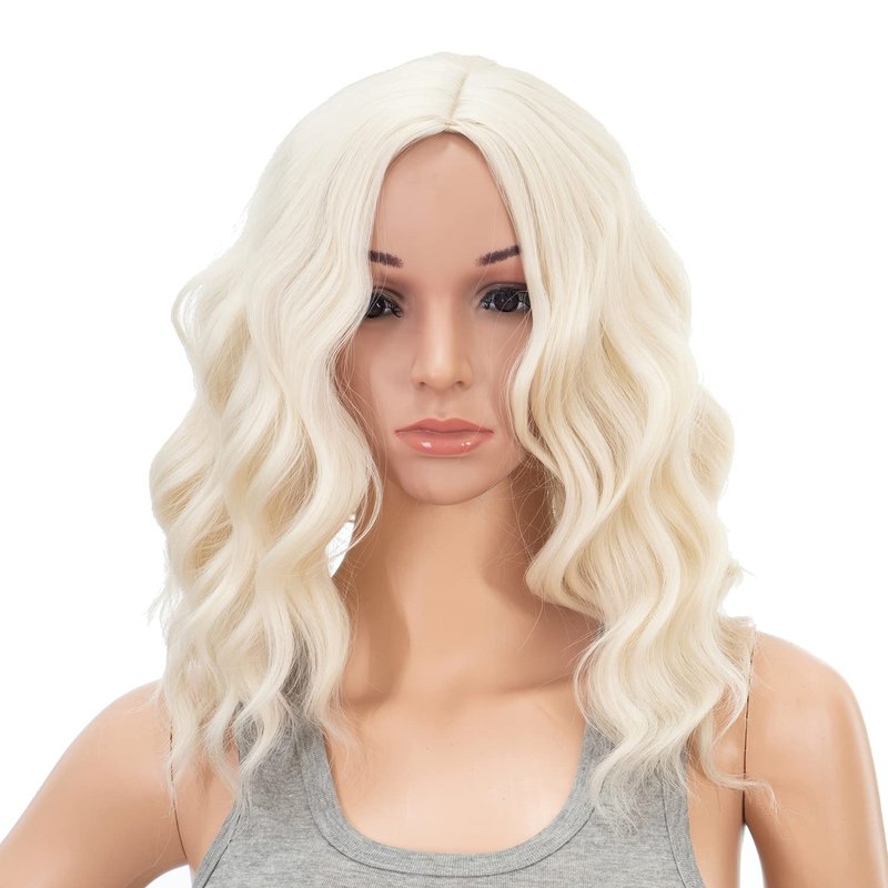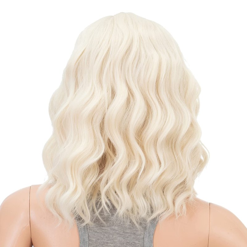 SWACC 15 Inch Short Curly Wavy Hair Wig Medium Length Synthetic Colorful Cosplay Daily Party Wig for Women with Wig Cap (Platinum Blonde)