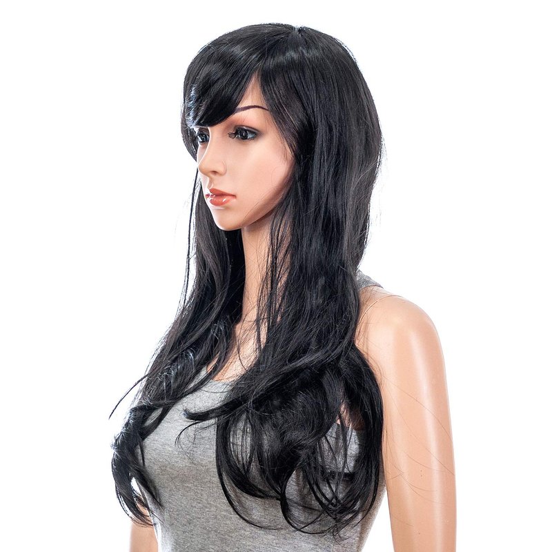 SWACC 26-Inch Long Curly Wave Cosplay Synthetic Wig Colored Hair Piece for Women with Wig Cap (Black)