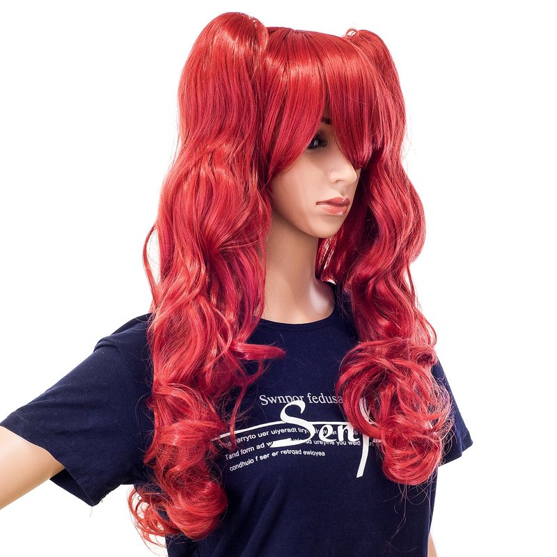 SWACC Long Curly Double Claw Clip on Ponytail Wig Synthetic Pastel Colorful Cosplay Daily Party Wig for Women and Kids with Wig Cap (Red)