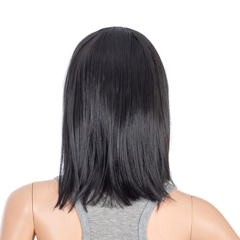 SWACC Short Straight Bob Wig with Bangs Synthetic Colorful Cosplay Daily Party Flapper Wig for Women with Wig Cap (Black-1B)