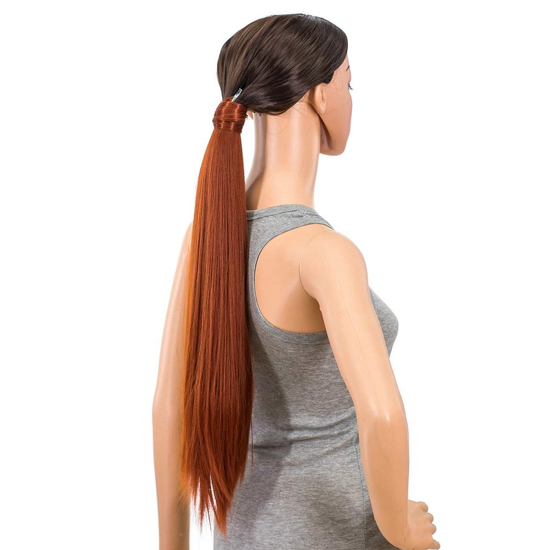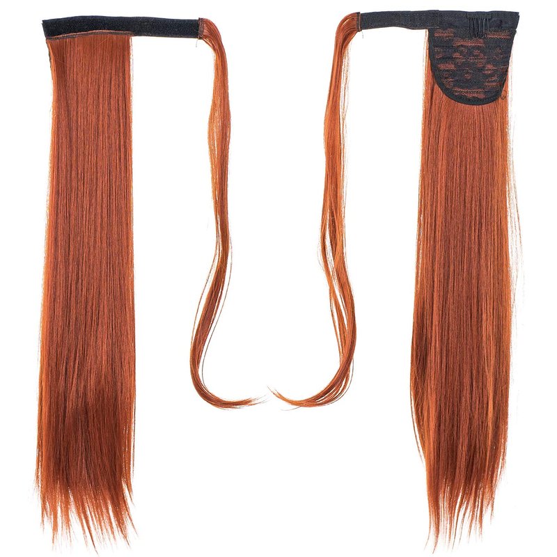 SWACC Women Long Straight/Curly Wavy Wrap Around Ponytail Extension Synthetic Hair Piece Clip in Hair extensions (Straight, Dark Copper Red-13#)