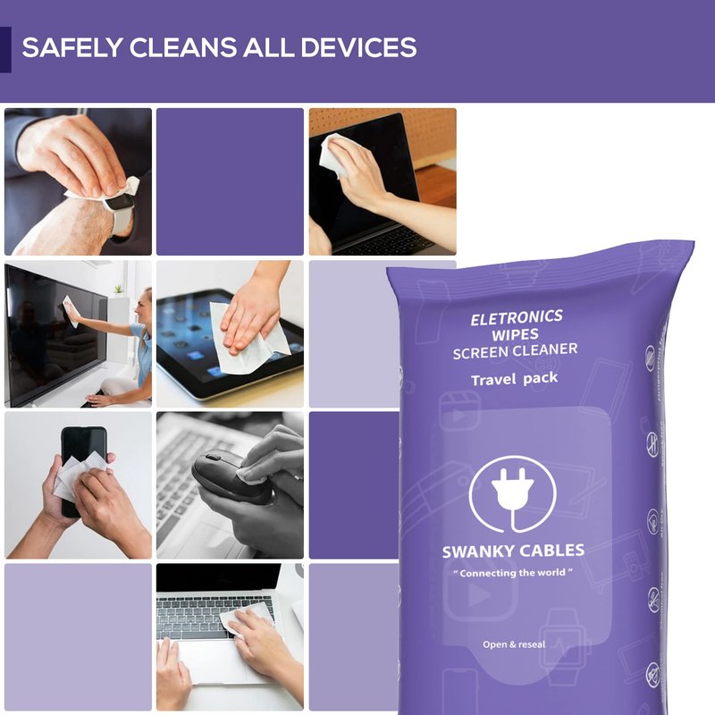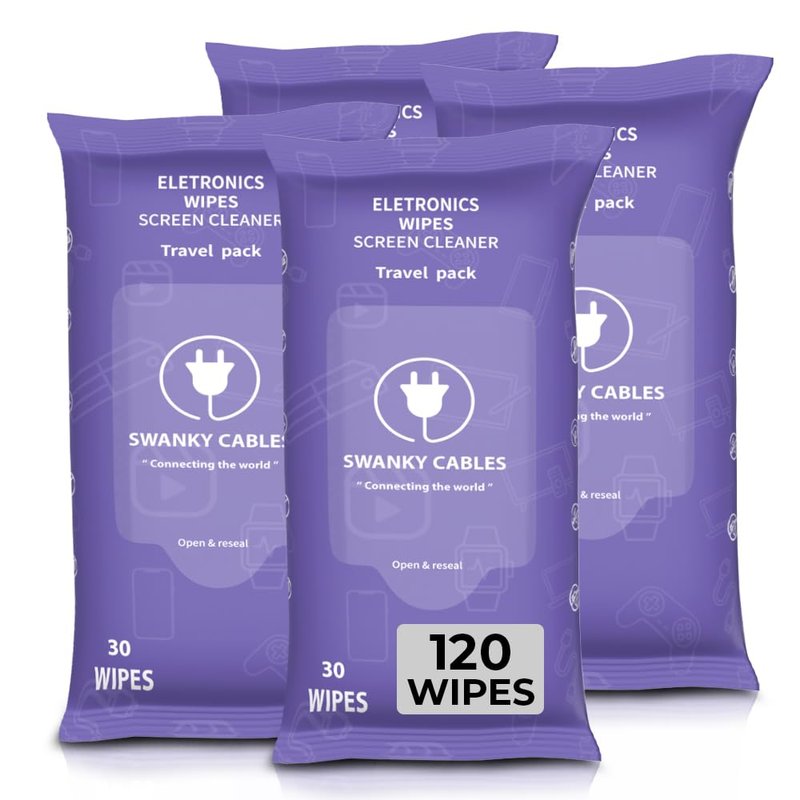 Swanky Cables Screen Cleaner Wipes: Electronic Wipes for Screens - Computer Screen Wipes for Lens, Phone, Tv Screen and Monitor Cleaning - Tech Wipes & Microfiber Cloth (120 Count, Soft Wipes)