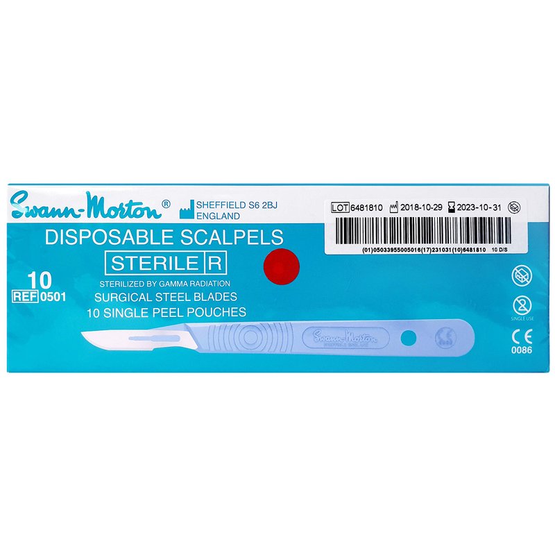 Swann-Morton #10 Sterile Disposable Scalpels with Blade [individually packed, box of 10]