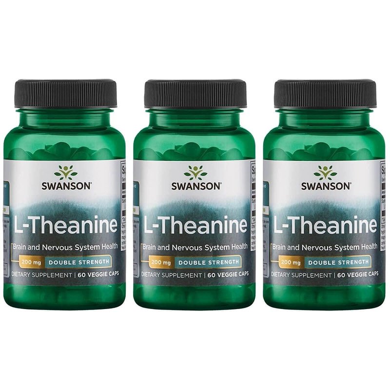 Swanson Amino Acid Double Potency Suntheanine L-Theanine 200 Milligrams 60 Veg Capsules 3 Pack