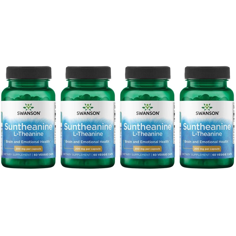 Swanson Amino Acid Double Potency Suntheanine L-Theanine 200 Milligrams 60 Veg Capsules 4 Pack