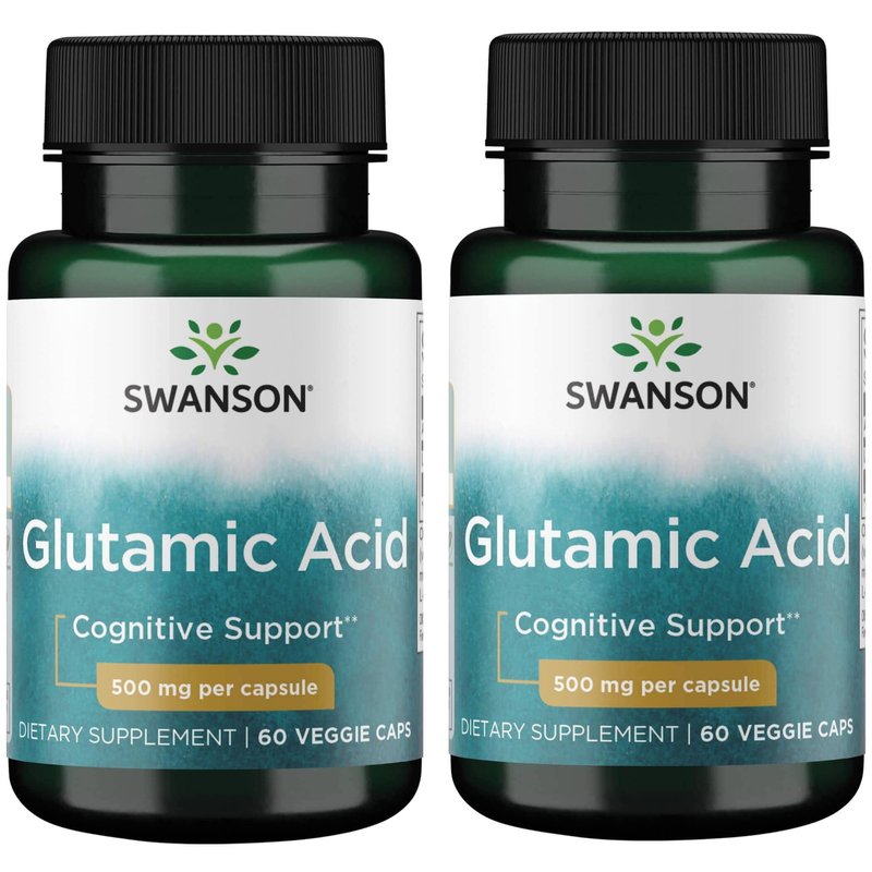 Swanson Amino Acid Glutamic Acid 500 Milligrams 60 Veg Capsules (Pack of 2)