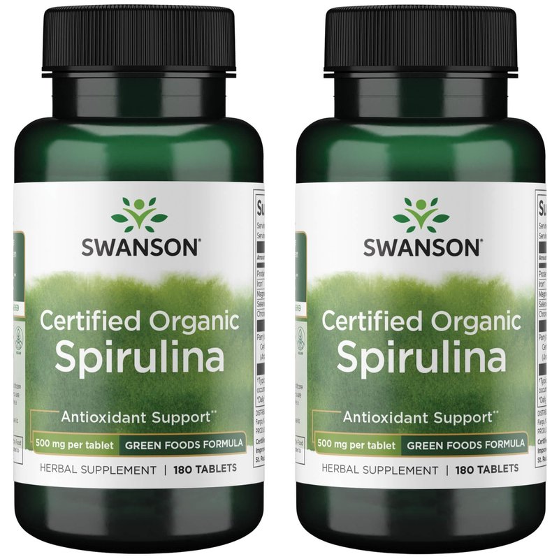 Swanson Certified Organic Spirulina 500 mg 180 Tabs (2 Pack)
