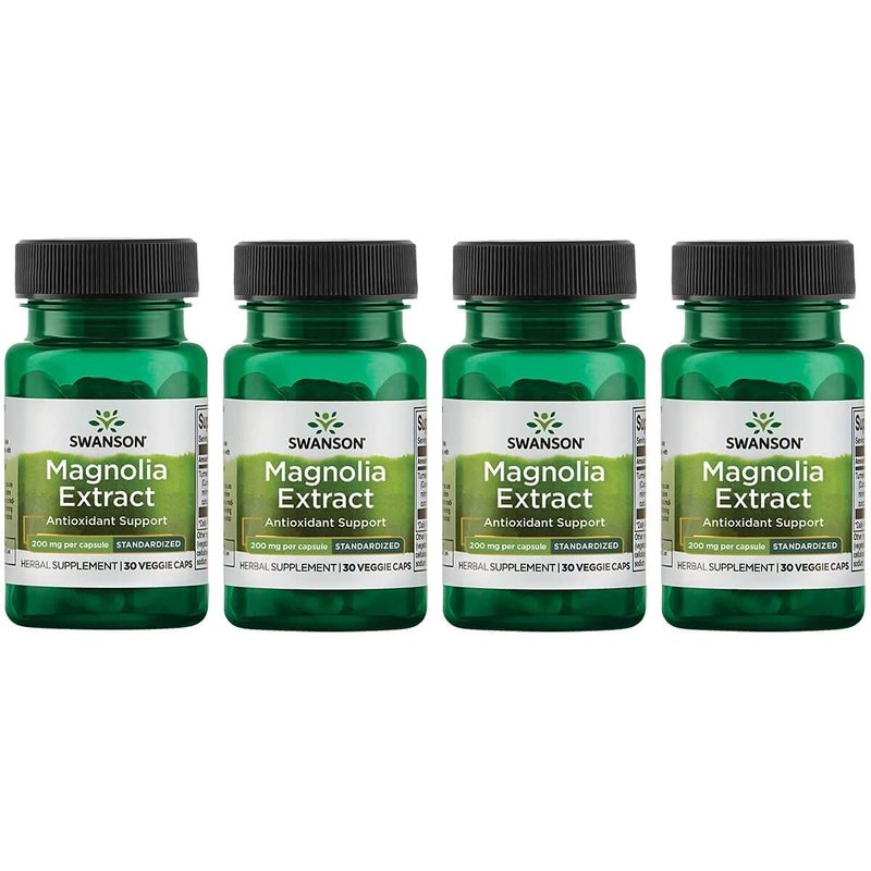Swanson Magnolia Bark-Herbal Supplement Traditionally Used to Promote Nervous System & Digestive Health Support-May Promote Respiratory Health & Stress Support (30 Veggie Capsules, 200mg Each) 4 Pack