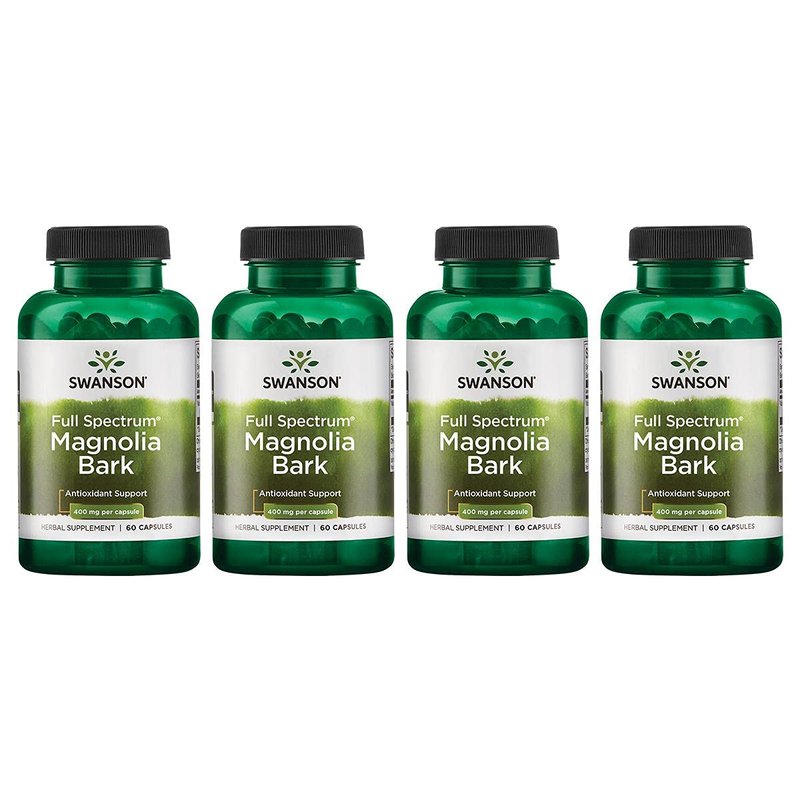 Swanson Magnolia Bark - Herbal Supplement Traditionally Used to Promote Nervous System & Digestive Health Support - May Promote Respiratory Health & Stress Support - (60 Capsules, 400mg Each) 4 Pack