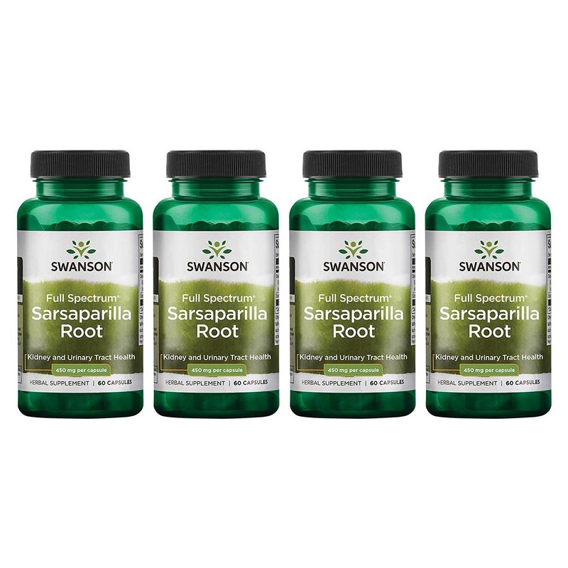 Swanson Sarsaparilla Root-Traditional Herbal Supplement Promoting Skin Health, Urinary Tract & Kidney Support-Natural Formula Supporting Overall Health & Wellness-(60 Capsules, 450mg Each) 4 Pack