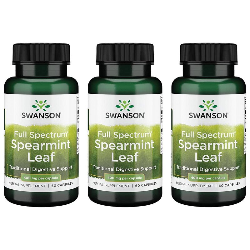 Swanson Spearmint Leaf (Mentha Spicata)-Full Spectrum Herbal Supplement Supporting Digestive Health & Mild Stomach Issues-Natural Formula Supporting Health & Wellness-(60 Capsules, 400mg Each) 3 Pack
