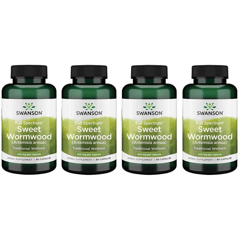 Swanson Sweet Wormwood - May Promote GI Gut Health, Microbial Balance & Digestive Health Support - Herbal Supplement with Artemisinin - (90 Capsules, 425mg Each) 4 Bottles