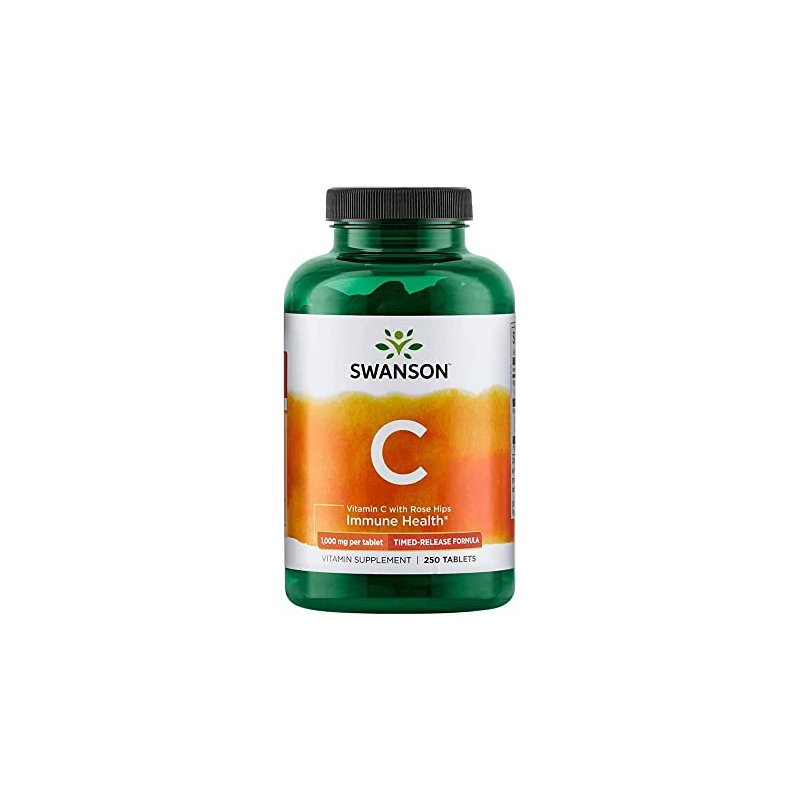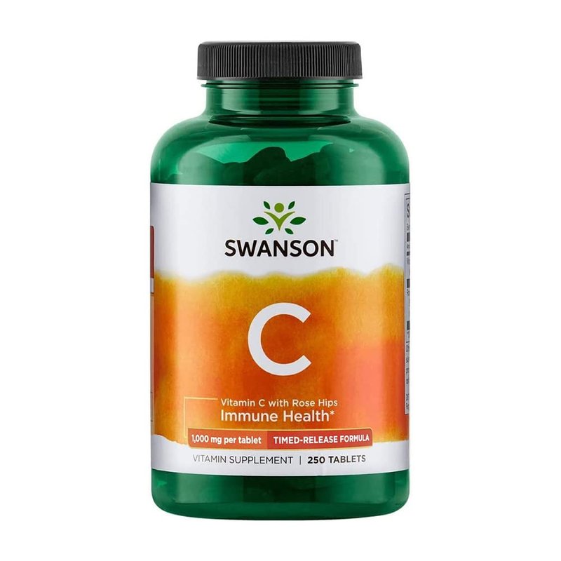 Swanson Timed-Release Vitamin C with Rose HIPS Immune System Support Skin Cardiovascular Health Antioxidant Supplement 1000 mg 250 Tablets(2 Pack)