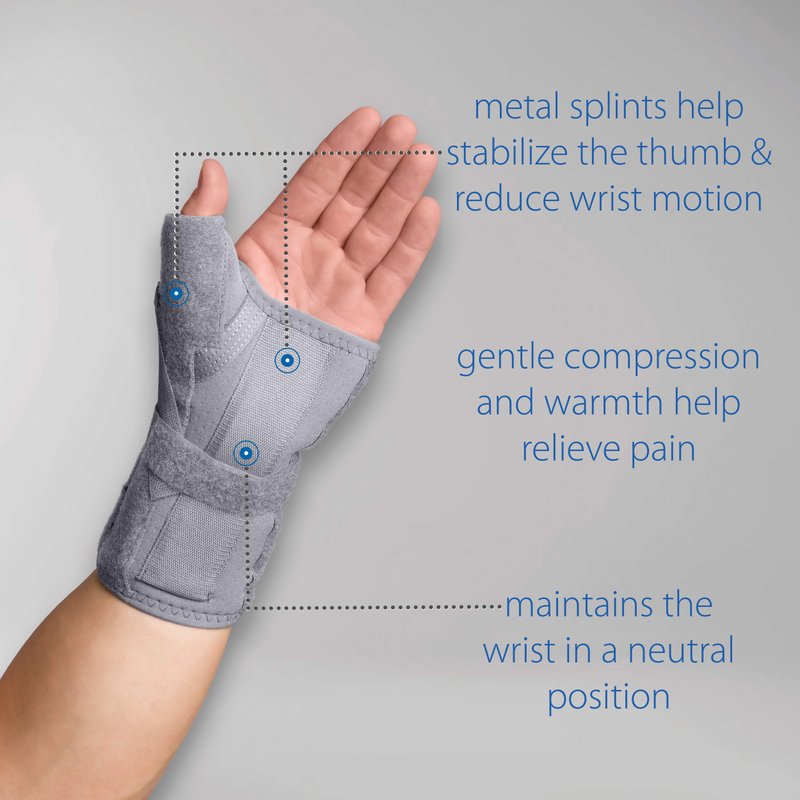 - Firm support for weak, injured, or aching wrists and thumbs
