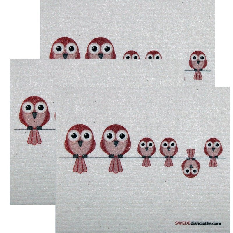 SWEDEdishcloths Swedish Dishcloth Set of 3 Each Swedish Dishcloths Redbirds on Wire Design | Eco Friendly Cleaning Absorbent Cloth Eco Friendly Cleaning Wipes