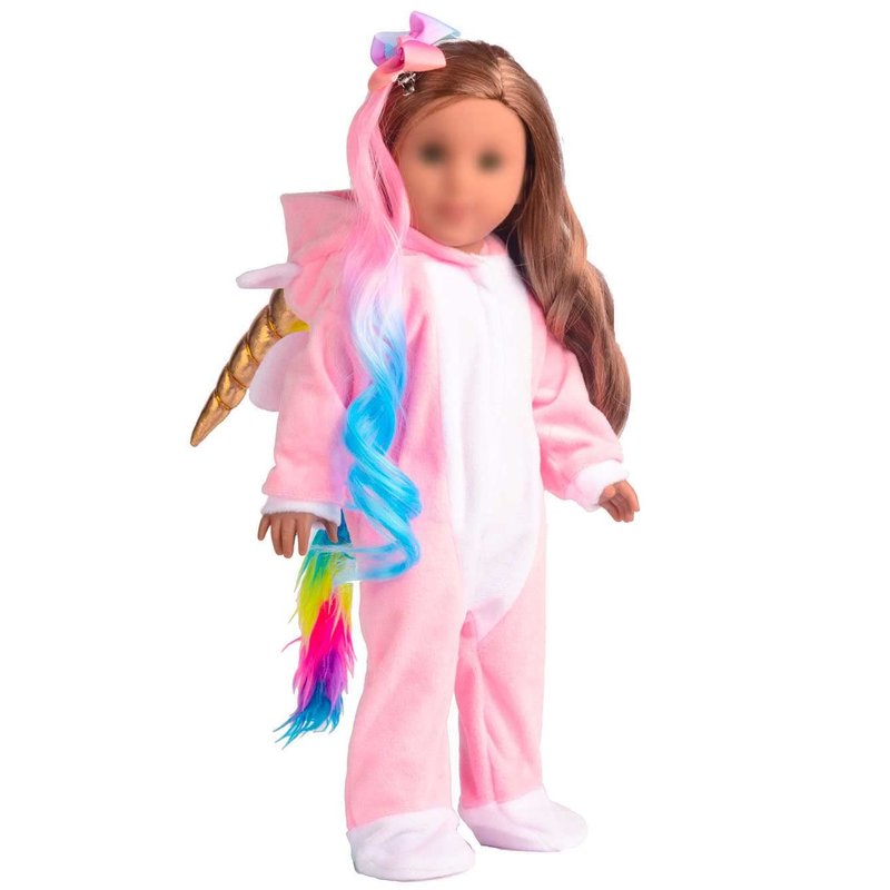- PACKAGE INCLUDES: 1PC 18 Inches Doll Clothes Hot Pink Unicorn Pajamas and 1PC Rainbow Hair Clips. The Doll Pajamas Is Easy To Get On the Dolls With Velcro On the Front. The Hair Clip Also Wear By Girls, It's Great Gift For Girls For Holiday and Birthday. Please Note, The Doll Is NOT included.