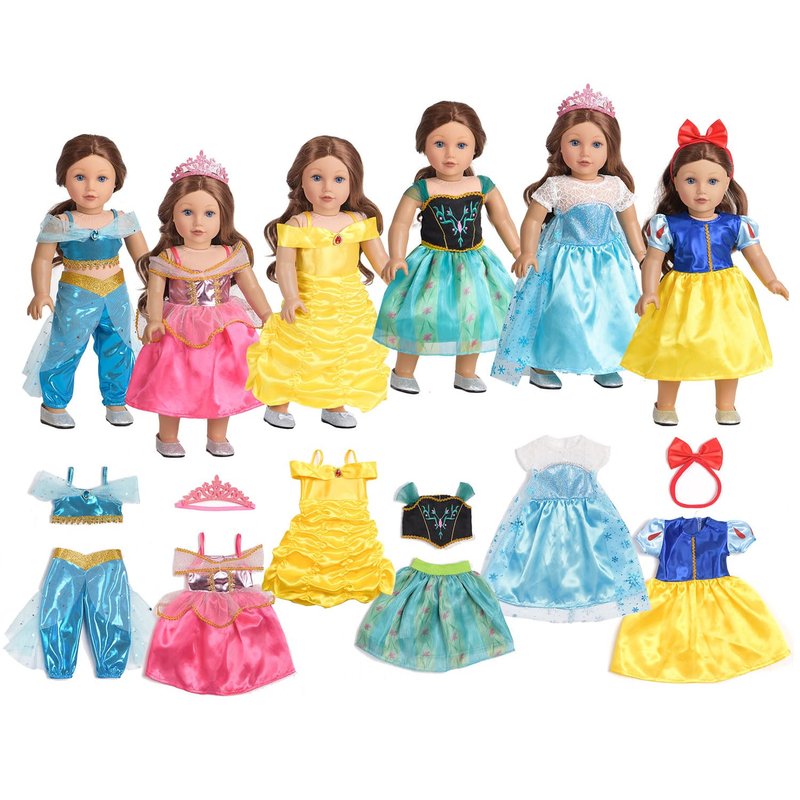 - Doll Clothes And Accessories: Beautiful Princess Dresses, Crown And Bow Handband For 18 Inches Dolls, 6 Sets Of Princess Dress Costumes Collection In Different Styles And Colors.