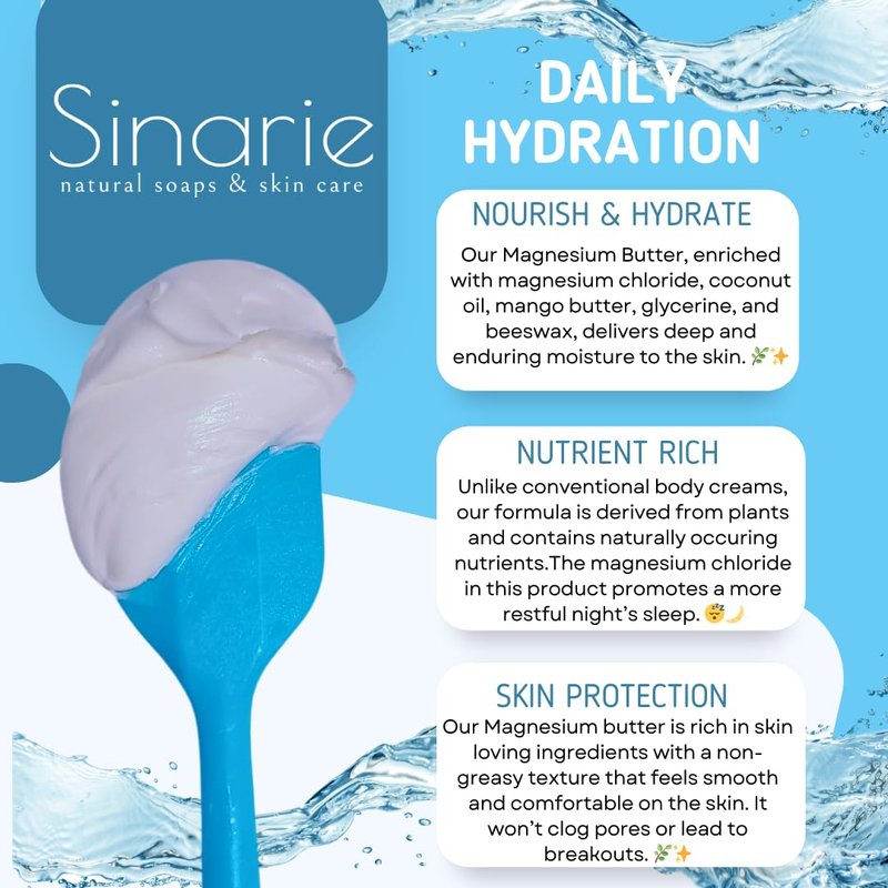 - Hydrating Delight: Our Magnesium Butter, enriched with coconut oil, mango butter, glycerin, and beeswax, delivers deep and enduring moisture to the skin. 🌿✨