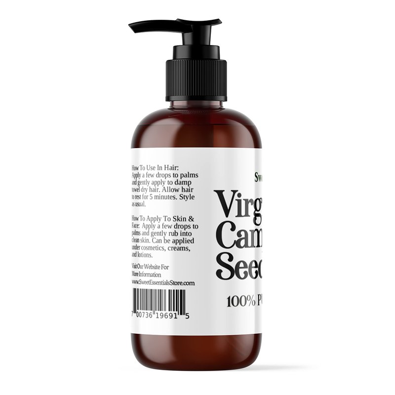 Sweet Essentials Organic Unrefined Camellia Seed Oil | Imported From Japan | 8oz Bottle w/Pump | 100% Pure - Virgin | 100% Organic | For Hair & Skin Use | Japanese Beauty Oil | Camellia Oleifera