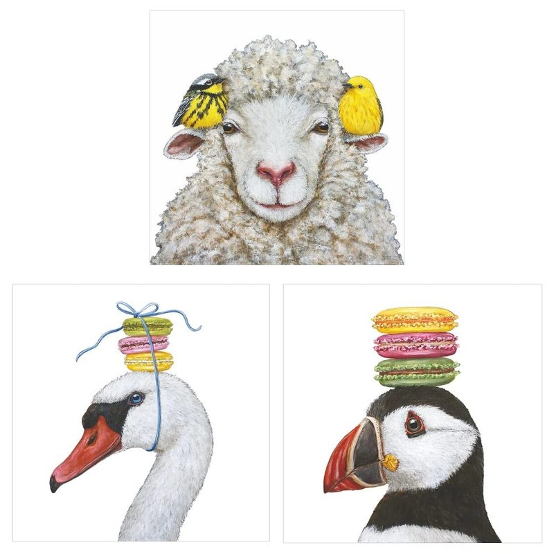 - (20) Molly & Friends - a sheep with gold bird friends, (20) Giselle and (20) Olaf , both donning a hat made of French macarons