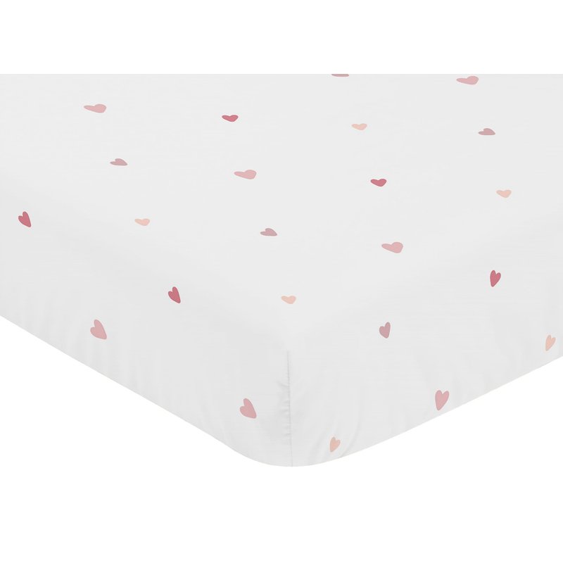 Sweet Jojo Designs Pink Boho Hearts Girl Baby Fitted Crib Sheet Infant Newborn Nursery Toddler Bed Room Shabby Chic Polka Dot Heart Blush Dusty Rose Mauve Bohemian for Boho Rainbow Cloud Collection
