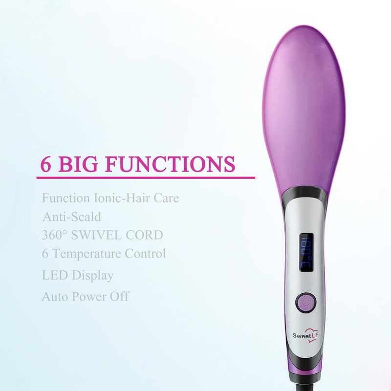 SweetLF Pro Hair Straightener Brush- Precision 6-Level Temp Control & Million-Count Negative Ions for Smooth, Frizz-Free Locks (Rose Purple)