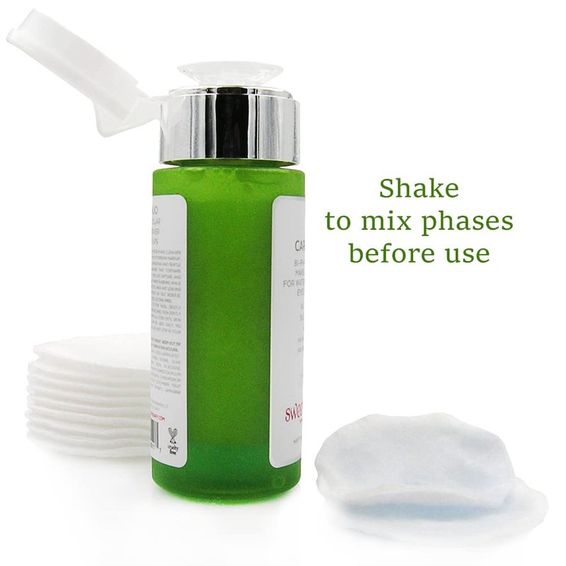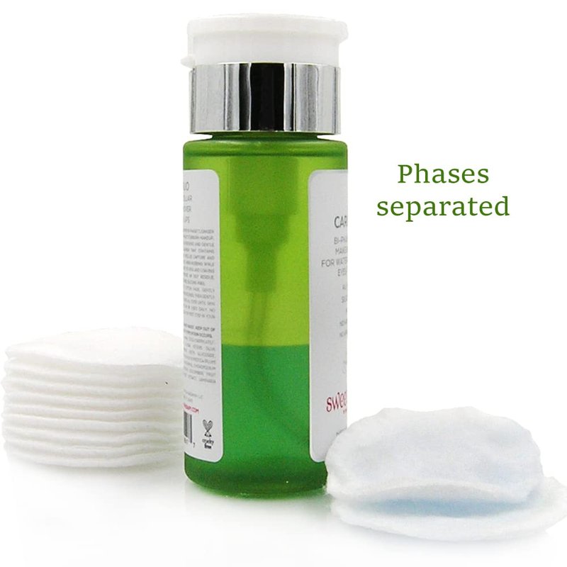 Carin’ duo is all natural and silicone free bi-phase cleanser that effortlessly removes even the most stubborn makeup, even waterproof. Yet, it’s soothing, refreshing and gentle to the skin. It’s multi-purpose cleanser that contains micellar technology. Like a magnet, micelles capture and lift away dirt, oil and makeup without harsh rubbing, while conditioning and refreshing delicate eye area and leaving skin perfectly clean and soft without an oily residue. Alcohol-free, artificial fragrance-free, silicone-free. Often the makeup remover will arrive with a frothy/foamy consistency due to being shaken up during shipment. This is normal and if the bottle is left to settle for 24-48 hours the contents will return to its normal state, which is separated into two parts (bi-phase): oil and water phase.