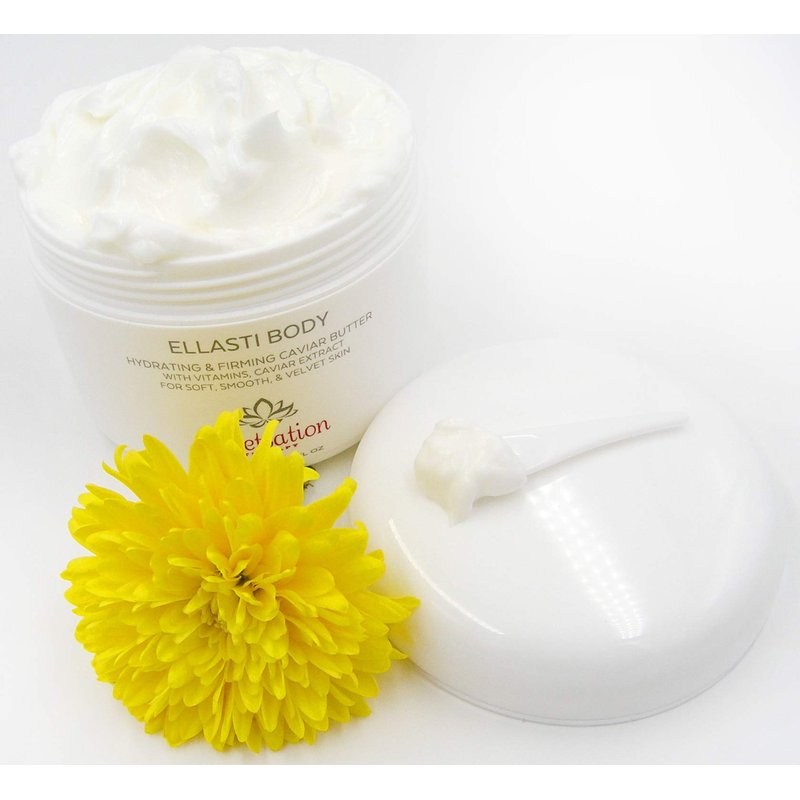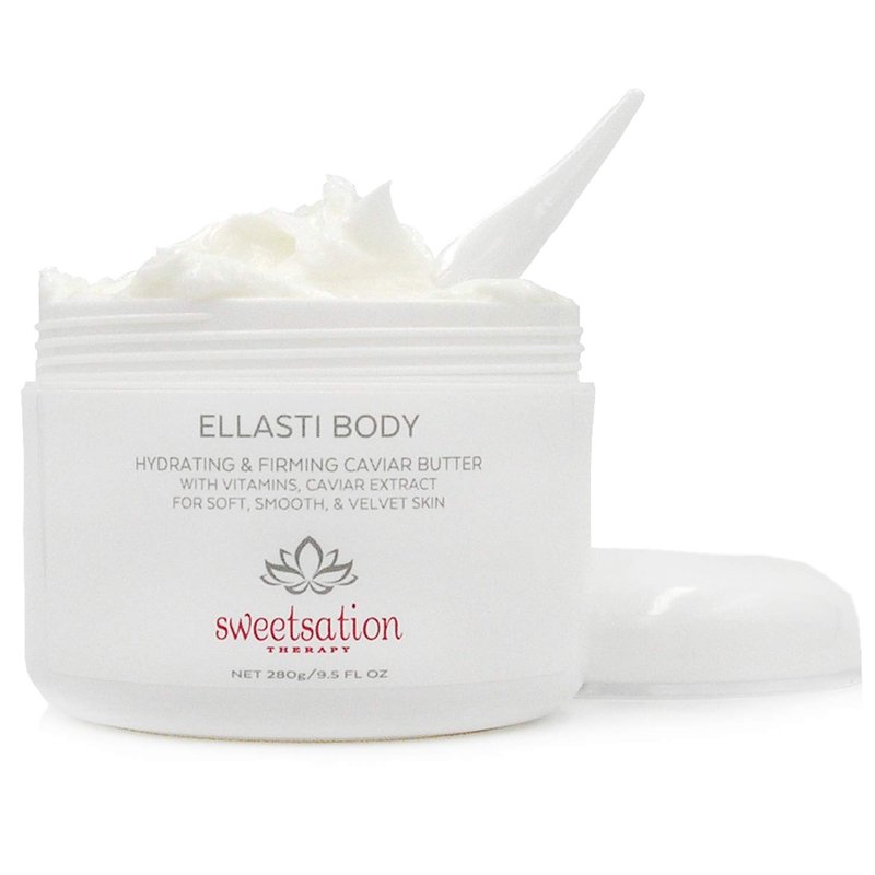 Sweetsation Therapy / YUNASENCE ELLASTIBODY Hydrating Firming Caviar Butter Moisturizing Cream, with Caviar Extract, Vitamin E, Reishi, Avocado & Green Tea. 9.5oz. For soft, comforted skin.