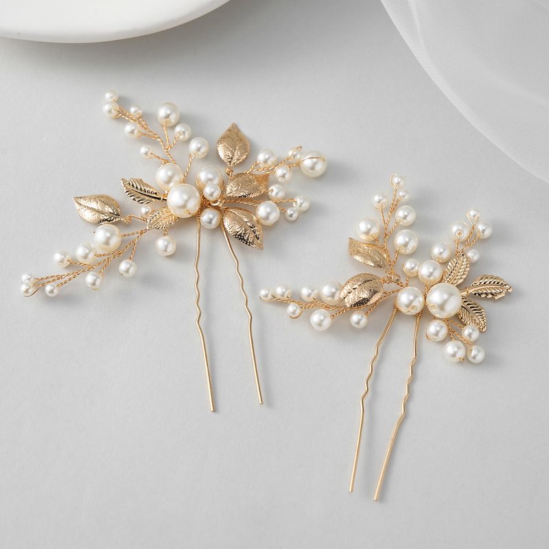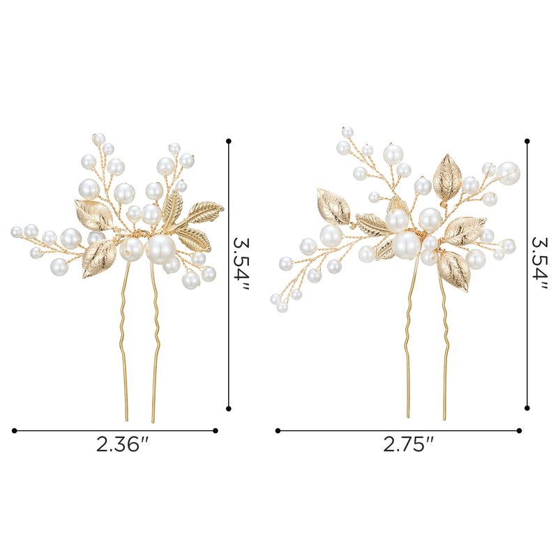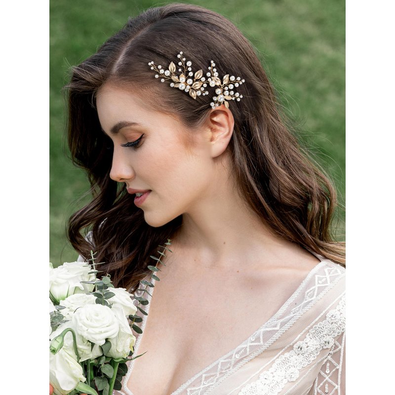 SWEETV 2Pcs Bridal Hair Accessories Pearl Bride Wedding Hair Pins Leaf Bridal Head Piece Rhinestones Hair Jewelry Gold Hair Accessories for Women and Girls