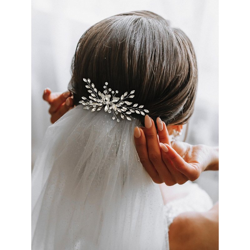- Crystal wedding hair comb is made of rhinestones & alloy. 100% handmade and well crafted.Wedding Bridal headpiece will bring glamour and elegant to your outfit, which is easy to fasten and take off.