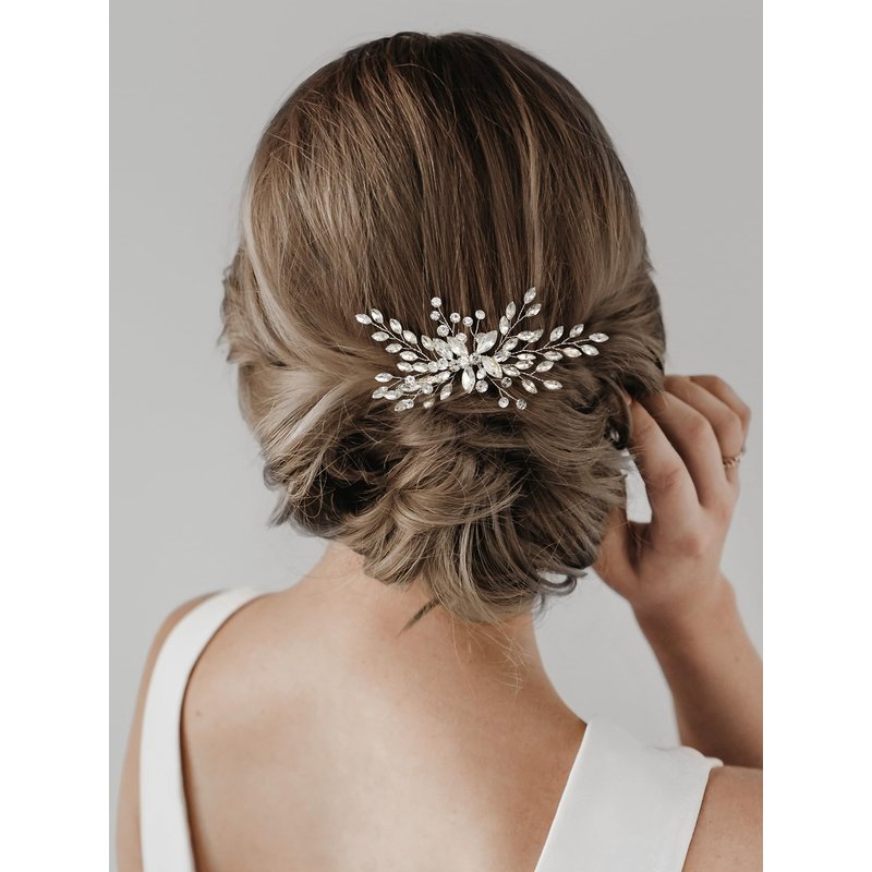 - Bridal hair comb approx size:4.52*2.56 inch,adjustable size for women and girls.you can bend the hairpiece to your desired look. Easy to wear and stay stable.