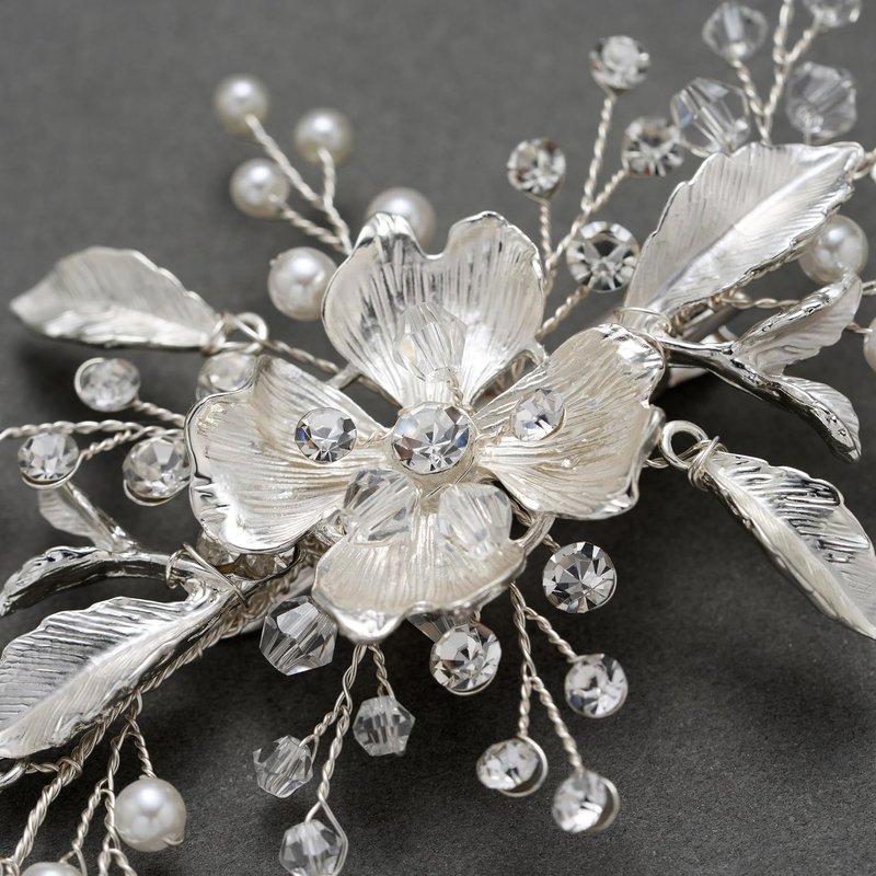 - 【High quality】Bridal hair side combs features 3D floral nestled amongst branches of glistening rhinestone and dainty metal leaves.every crystal is pasted carefully and evenly.You will surely get a ton of compliment!!!