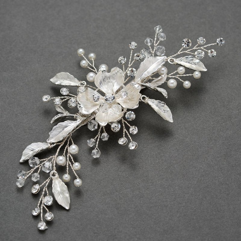 SWEETV Bride Wedding Hair Clip Flower Bridal Comb Silver Bride Hair Piece Crystal Side Combs Leaf Hair Accessories for Women and Girls