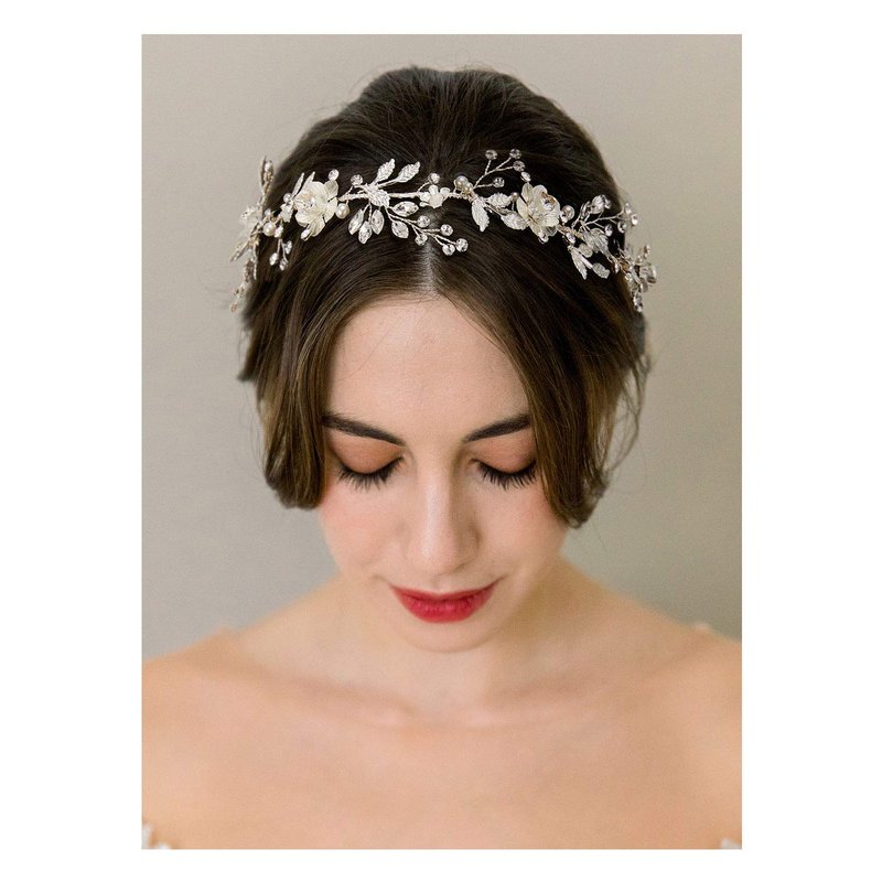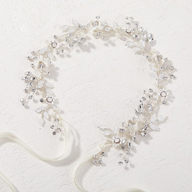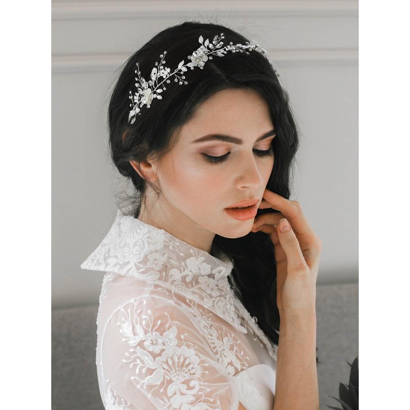 - ✔【Design】: Silver flower-leaf hair vine with opal buds and crystals--This floral bridal headband is entirely wired by hand, the vine is embellished with luminescent pearl sprays, matt silver leaves, brilliant crystals and delicate opal.