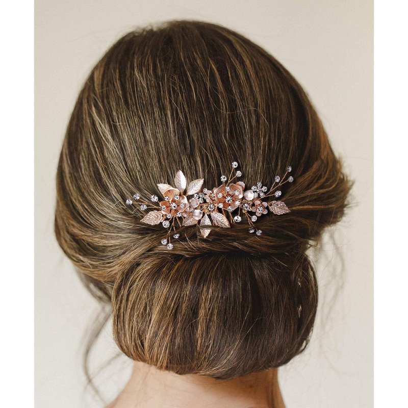 - ❀Material: Delicate wedding hair comb made of rhinestones, rose gold plated petals and leaves, soft alloy wire,100% handmade and well crafted.