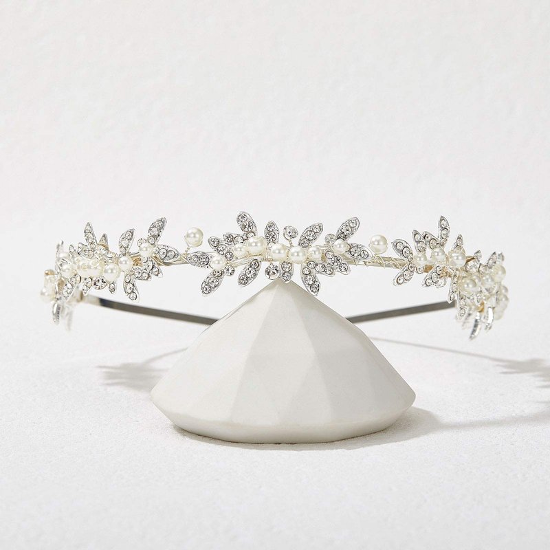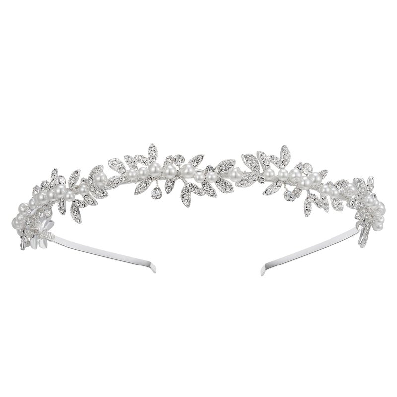 SWEETV Rhinestone Bridal Headband Silver Crystal Tiara for Women Pearl Wedding Headpieces for Bride Hair Accessories for Prom Birthday Party