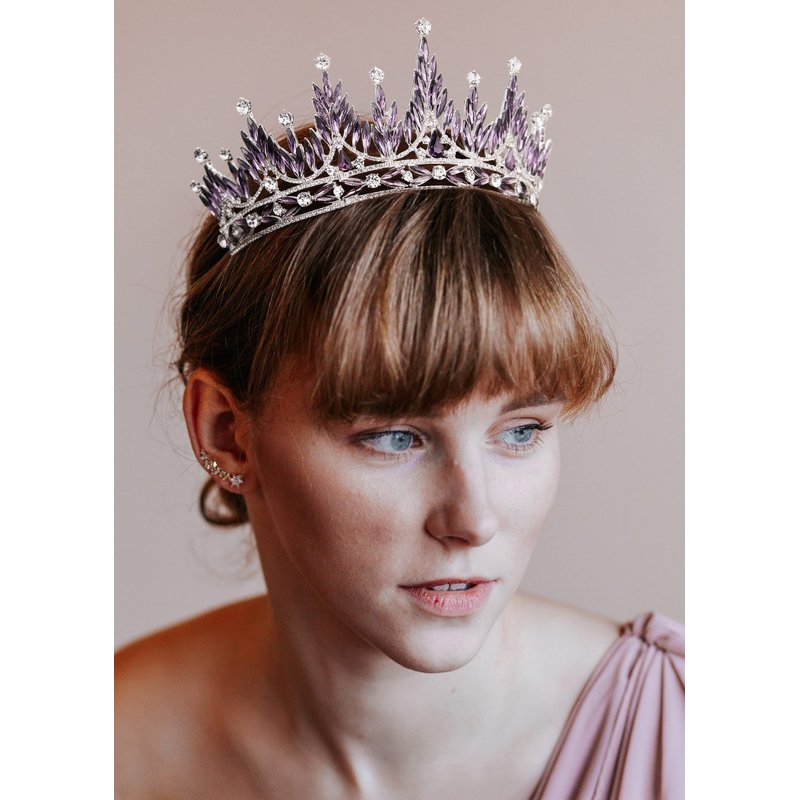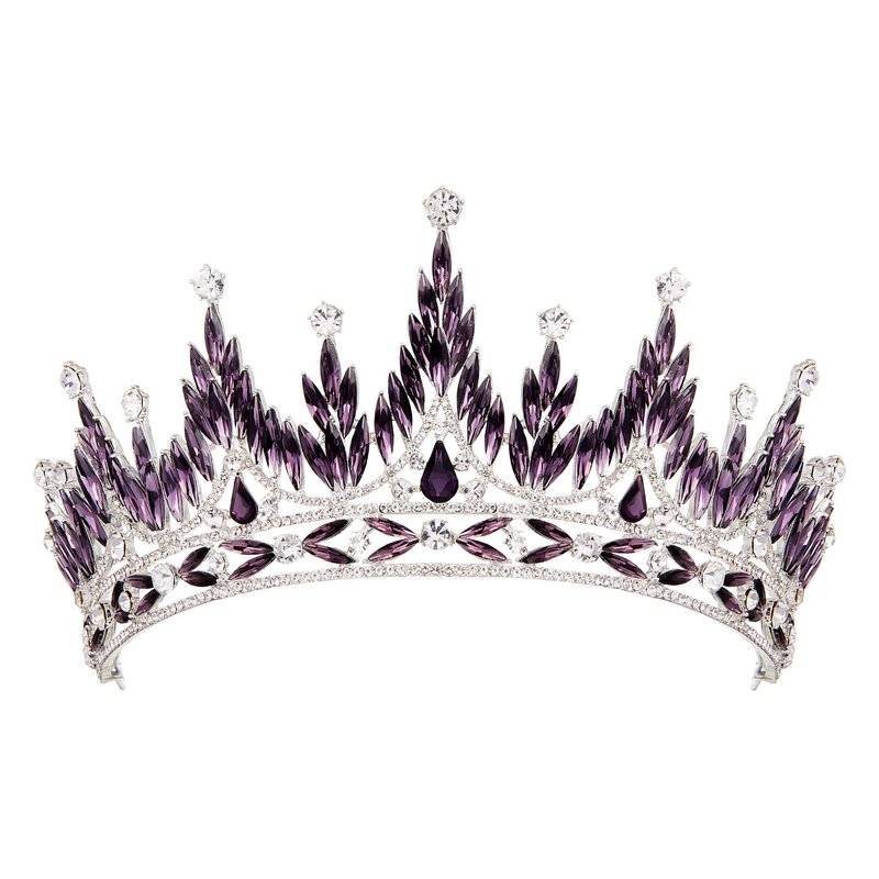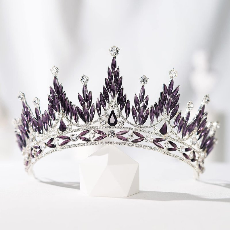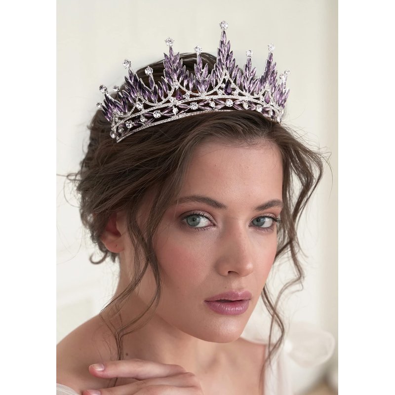SWEETV Tiaras and Crowns for Women, Wedding Tiara for Bride, Rhinestone Queen Crown, Crystal Costume Hair Accessories for Birthday Prom Quinceanera Celebration,Purple