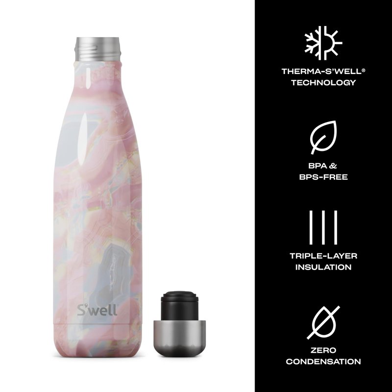 S'well Stainless Steel Water Bottle, 17oz, Geode Rose, Triple Layered Vacuum Insulated Containers Keeps Drinks Cold for 36 Hours and Hot for 18, BPA Free, Perfect for On the Go