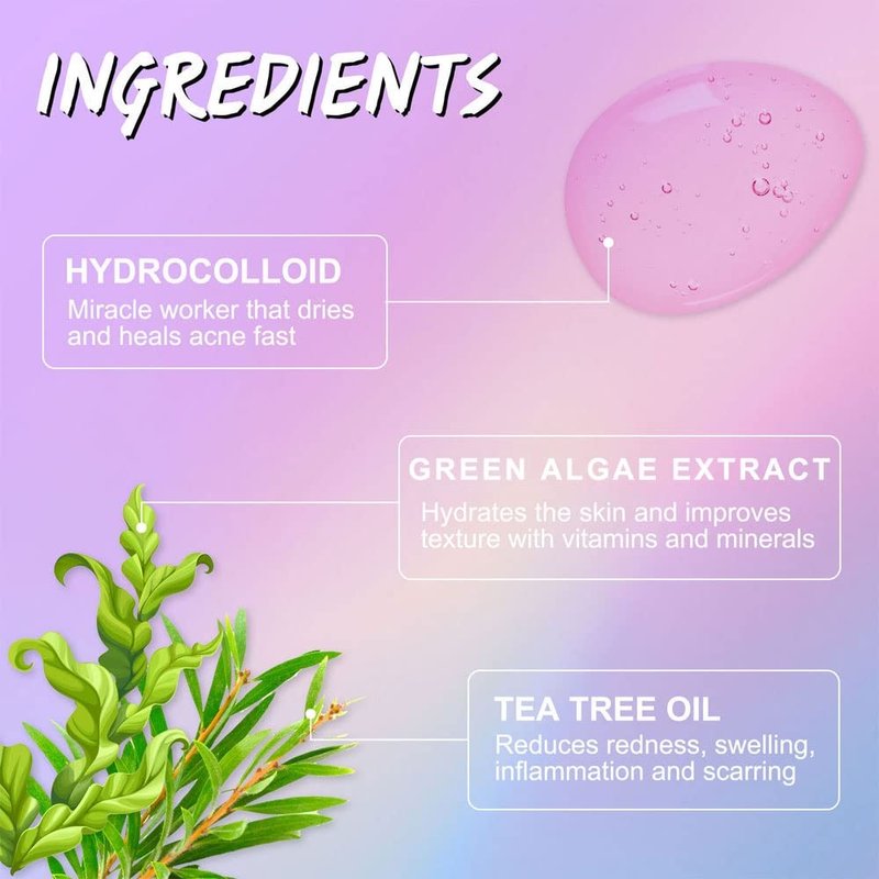 Our Acne Patches have added natural tea tree oil extract & non-comedogenic green algae to