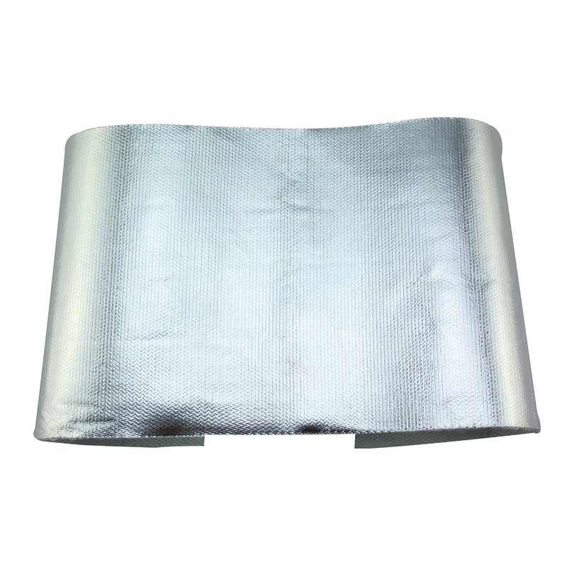 - Non-conductive strap-on heat shield with a highly-reflective mylar surface