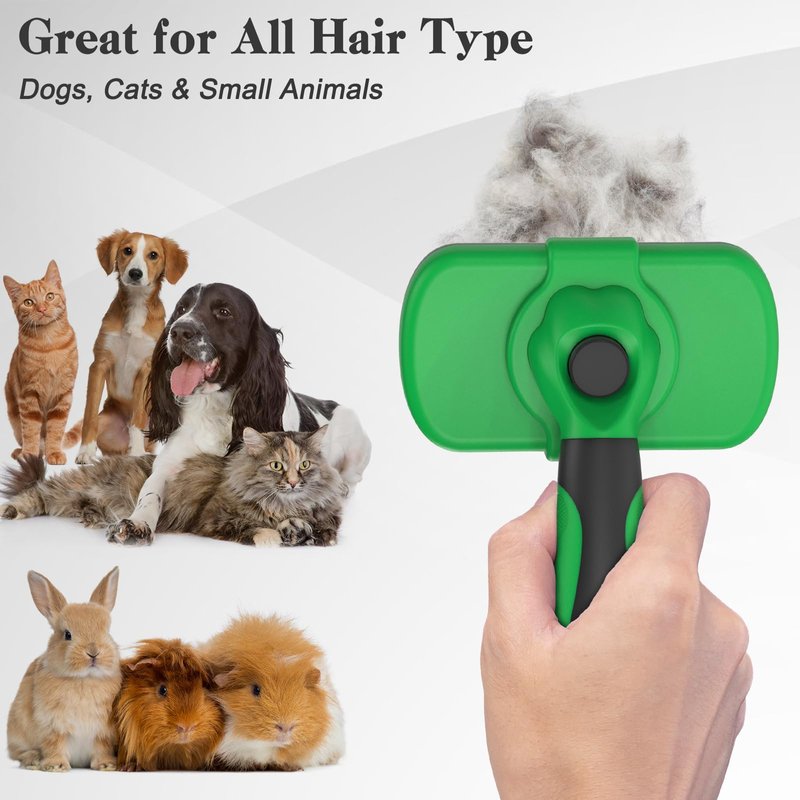 Swihauk Self Cleaning Slicker Brush for Dogs & Cats, Skin Friendly Grooming Cat Brush, Dog Brush for Shedding, Deshedding Brush, Hair Brush Puppy Brush for Haired Dogs, Pet Supplies Accessories, Green