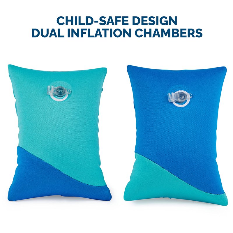 - COMFORTABLE FABRIC: Children will enjoy endless hours of outdoor fun and swimming thanks to the soft and comfortable fabric that makes these pool floaties a pleasure to wear!