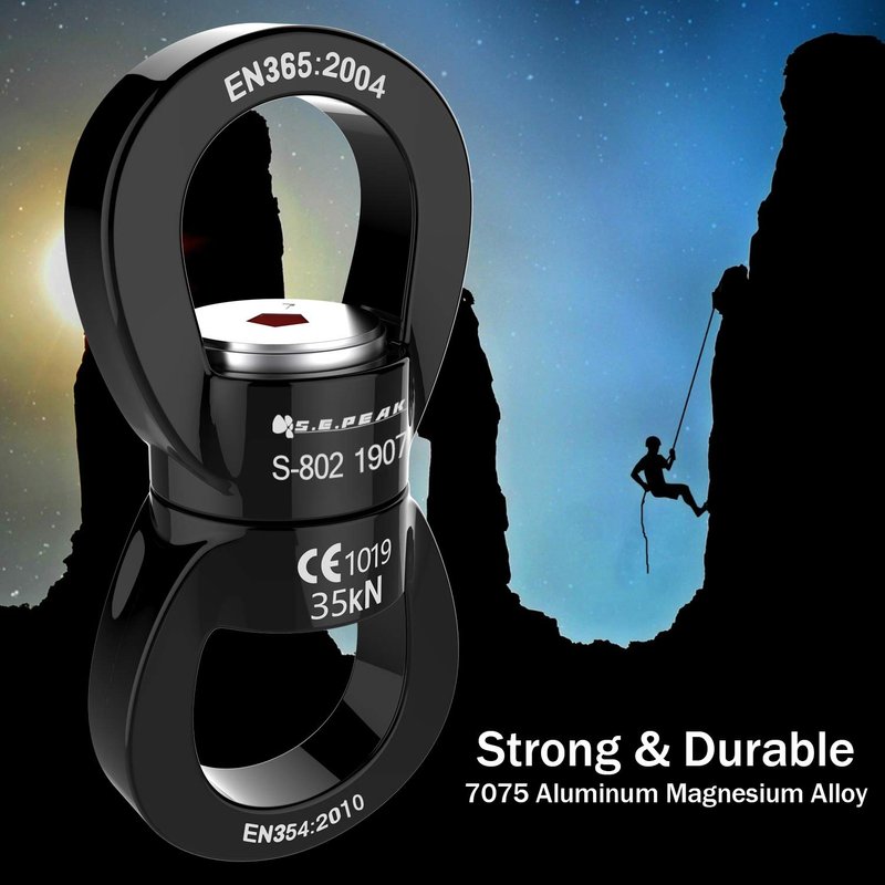 - ✔ EASY TO USE -- 3.35 x 1.58 inch compact sizes, 2.58Oz weight only, the micro rotator is ideal for your outdoor carrying. Wide eye openings can attach up to three carabiners. For using with static and dynamic ropes placed between a load and either rope or cable, can be rotated 360 degree, and the rope does not twist knot. Package included: 1 x climbing swivel.