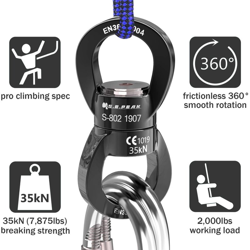 Now, we launch this safest rotational device with is perfect suspension for the harsh demands of rock climbing and mountaineering, are popular for all kinds of rigging and hanging, such as tire swings, hanging swings, disc swings, web/chair swings, aerial silks or anywhere you need dependable.